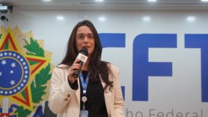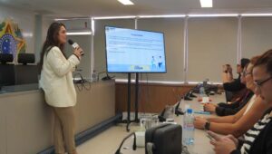 A técnica industrial da Gerência Técnica do CFT, Mirellen Mara Moreira, por sua vez, apresentou as atividades da CCAT, com ênfase nas ações conduzidas como parte do Projeto Cuidar e também nas ações previstas, como a criação de canais seguros de denúncia e a capacitação continuada dos integrantes da CCAT.