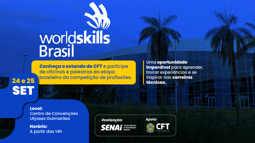 O Conselho Federal dos Técnicos Industriais (CFT) promove a valorização do ensino técnico patrocinando a Worldskills Brasil 2025. A etapa nacional, realizada pelo Serviço Nacional de Aprendizagem Industrial (SENAI) dos dias 24 a 28 de setembro no Centro de Convenções Ulysses Guimarães, em Brasília, classifica os vencedores para a etapa internacional, que em 2026 será