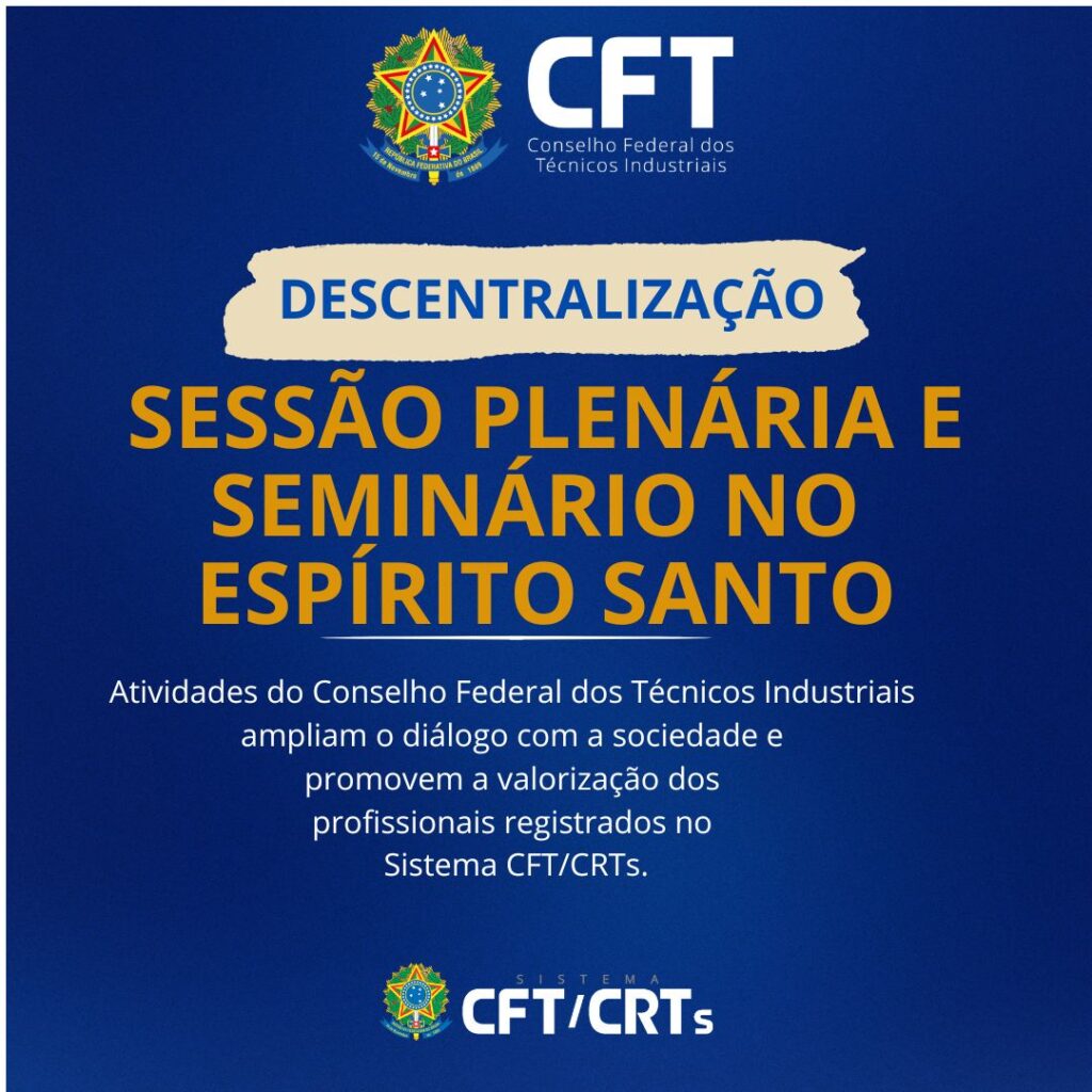 A semana começou com uma intensa programação do Conselho Federal dos Técnicos Industriais (CFT). Entre os destaques estão a 43ª Sessão Plenária Ordinária da autarquia federal e o seminário “Os Técnicos Industriais no Cenário Desenvolvimentista do Espírito Santo”. Todas as atividades serão realizadas em Vitória, capital do estado capixaba, que recebe dirigentes, conselheiros e equipes