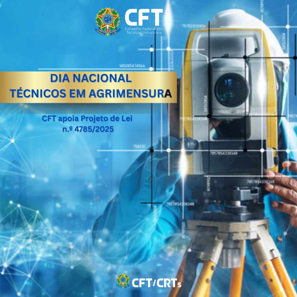 O Conselho Federal dos Técnicos Industriais (CFT) apoia o Projeto de Lei n.º 4785/2025, que institui o Dia Nacional dos Técnicos em Agrimensura. A proposta é de autoria do deputado federal Tião Medeiros (PP/PR) e foi sugerida pelos professores do curso técnico em Agrimensura do Instituto Federal de Santa Catarina (IFSC). A proposição iniciou sua