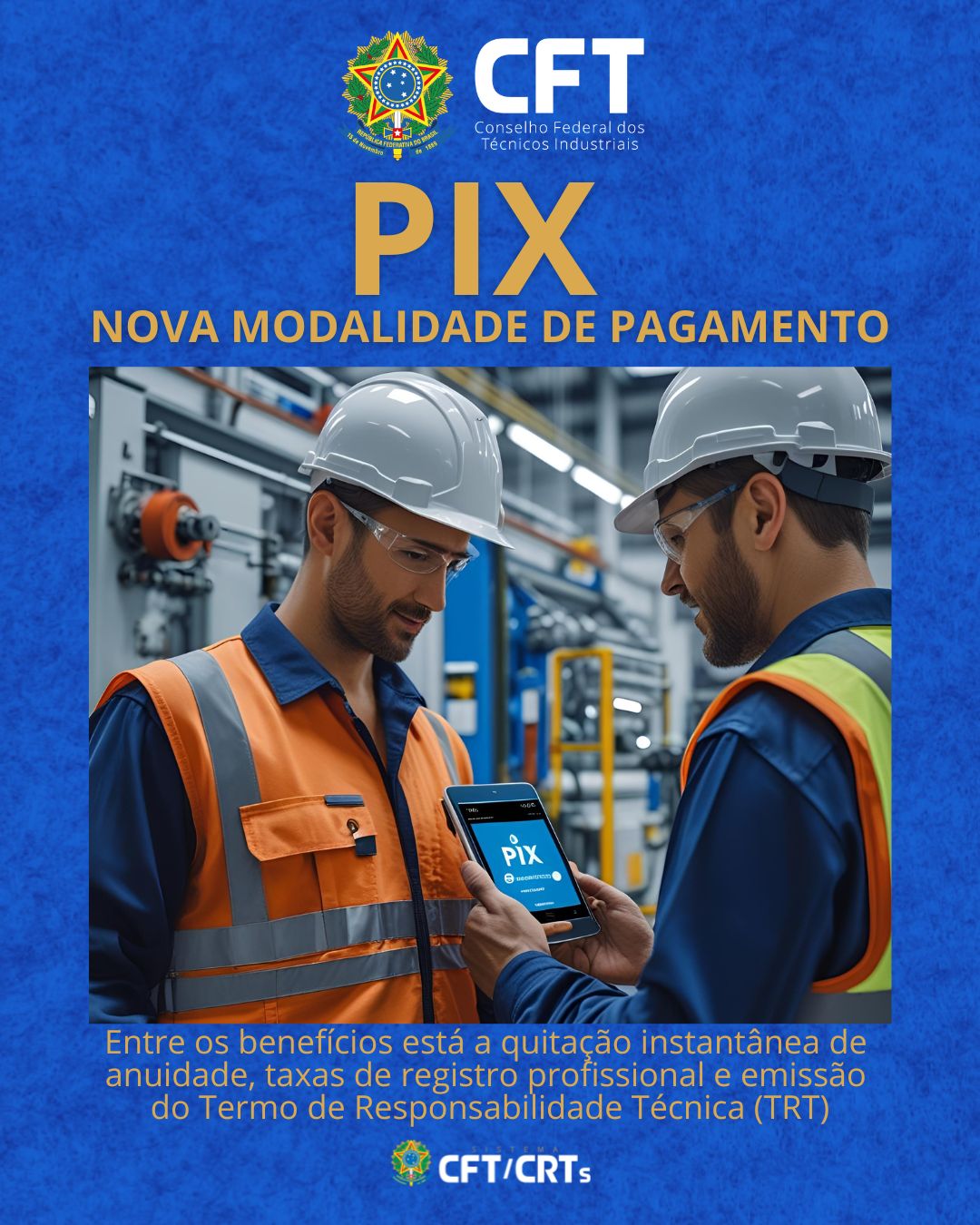 O Sistema CFT/CRTs agora oferece o PIX como modalidade de pagamento, beneficiando diretamente os técnicos industriais. Essa inovação permite a quitação instantânea de anuidades, taxas de registro profissional e a emissão dos Termos de Responsabilidade Técnica (TRT).